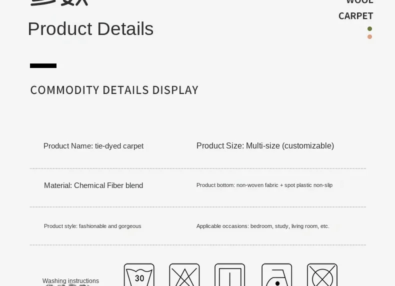 For simple dust, take the carpet outdoors and pat the dust and hair on the surface of the carpet vigorously; if the carpet is dirty, it is best to wash the plush carpet with dry cleaning, and pay attention to the cleaning strength so as not to damage the fluff of the product. Blow dry with a hair dryer after cleaning, the effect is very good.